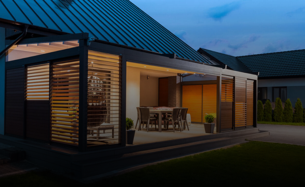 Konstrukcja została zaprojektowana z dbałością o detale, z ukrytymi elementami mocowań, co nadaje jej estetyczny i elegancki wygląd. Model doskonale komponuje się z tradycyjnymi domami jednorodzinnymi, a także świetnie sprawdza się jako zadaszenie tarasu przy restauracjach.