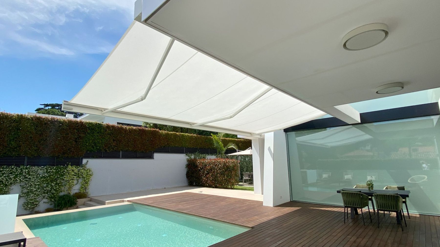 Po rozłożeniu pokazuje swoje możliwości, oferując imponujące wymiary nawet do 700 × 400 cm. Istnieje także możliwość łączenia kilku markiz w jeden system, dzięki czemu można zacienić jeszcze większe powierzchnie – nawet przy zastosowaniu trzech markiz obok siebie.