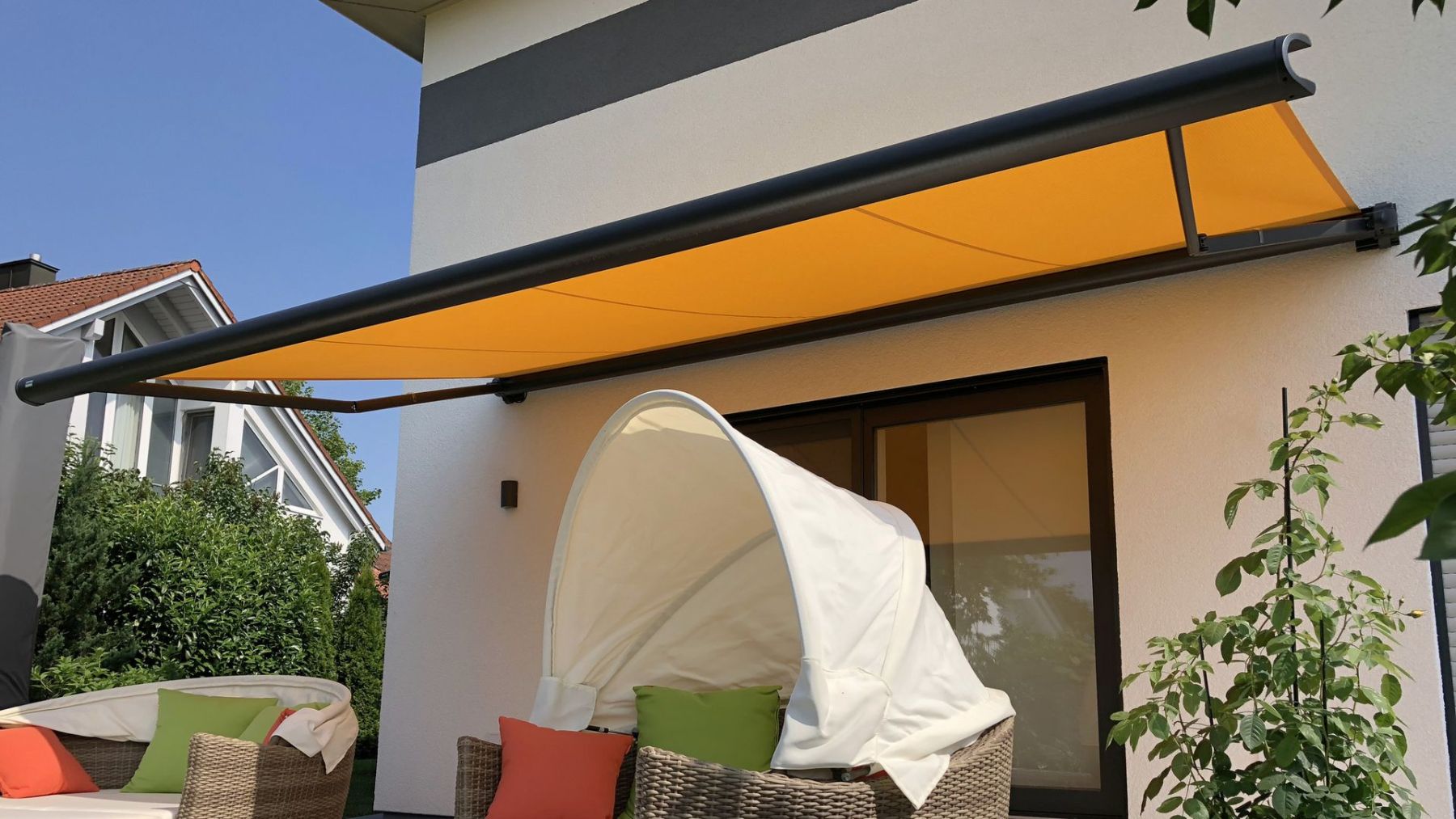 Mała, oszczędzająca miejsce i lekka – markilux 990 z pełną kasetą doskonale wpisuje się w architekturę elewacji dzięki swojej wyjątkowo smukłej kasecie o wysokości zaledwie 124 mm. To idealne rozwiązanie do zacieniania małych tarasów i balkonów.
