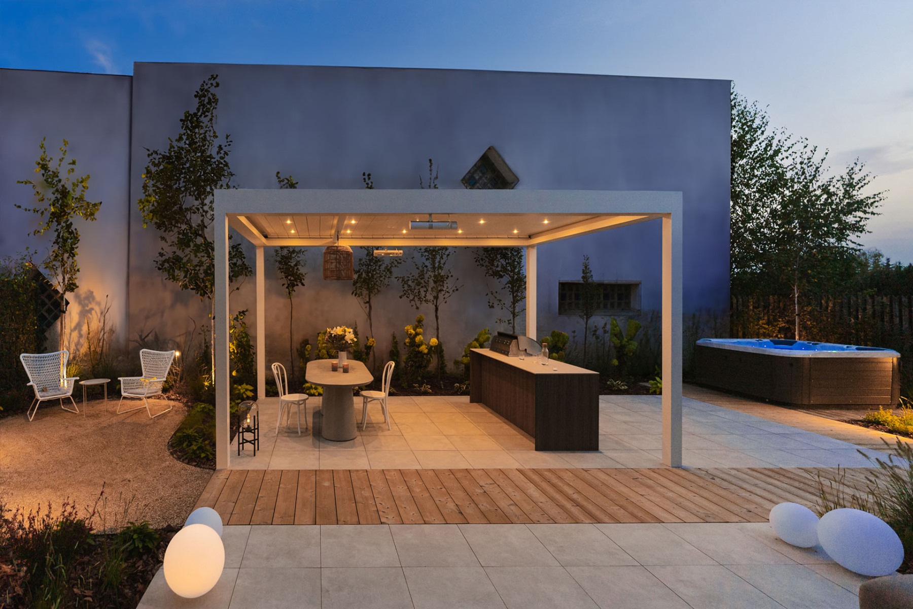 Rozwiązanie to można zastosować w zadaszeniach lamelowych, tkaninowych oraz stałych, dzięki czemu łatwo stworzyć przytulne i komfortowe oświetlenie sprzyjające wieczornemu wypoczynkowi na tarasie.