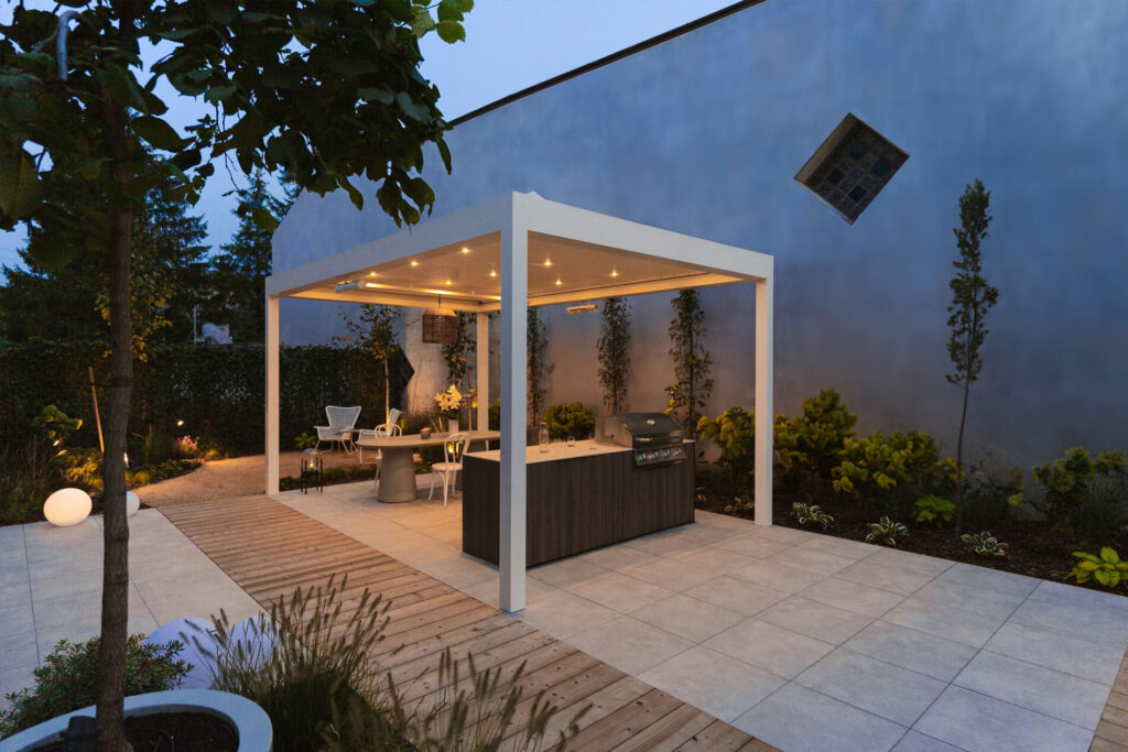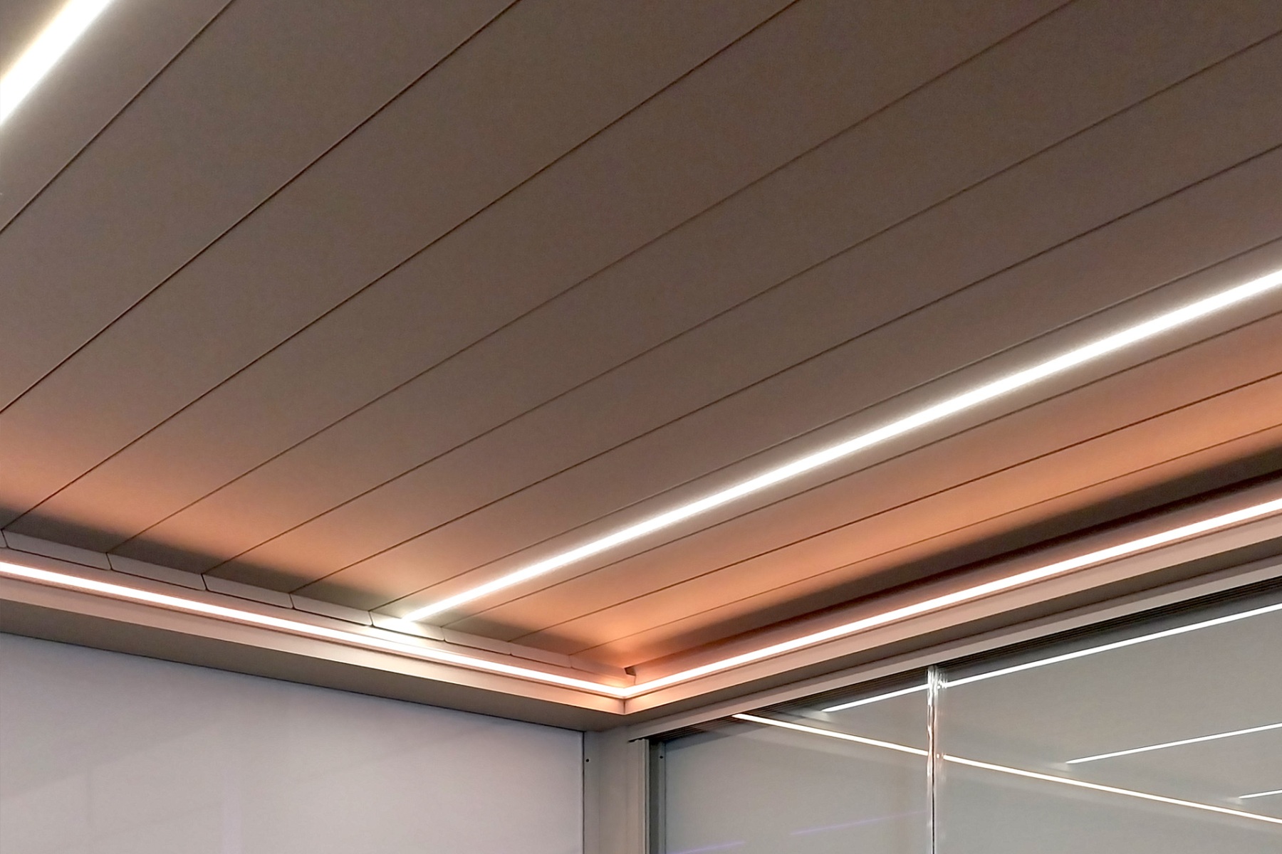 Oświetlenie jest w pełni zintegrowane z konstrukcją zadaszenia. W zależności od modelu może być zamontowane w lamelach, belkach przeciwwietrznych lub dookoła korony konstrukcji. Cała instalacja elektryczna została ukryta wewnątrz profili, dzięki czemu zachowany jest elegancki i minimalistyczny wygląd tarasoli.