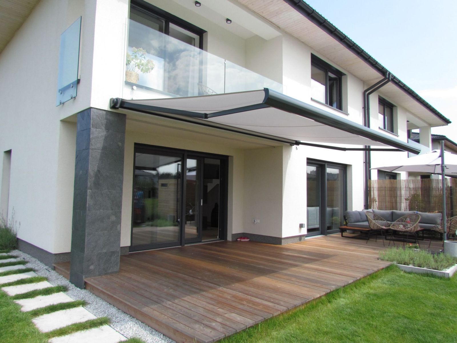 Dzięki uniwersalnym uchwytom bocznym markiza może być montowana zarówno do ściany, jak i do sufitu. Pozwala to na instalację również w miejscach o ograniczonej przestrzeni, na przykład pod betonową płytą balkonu.