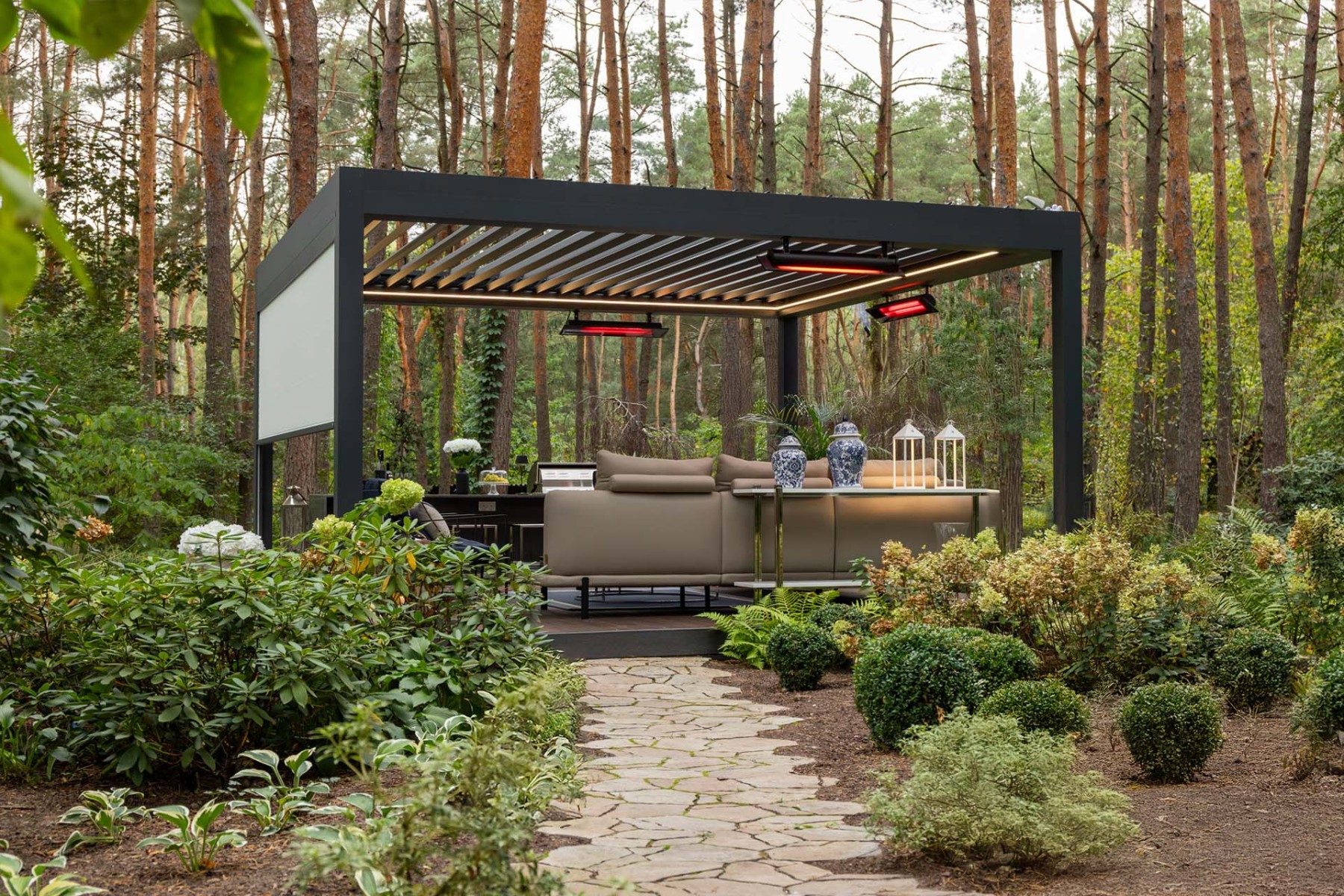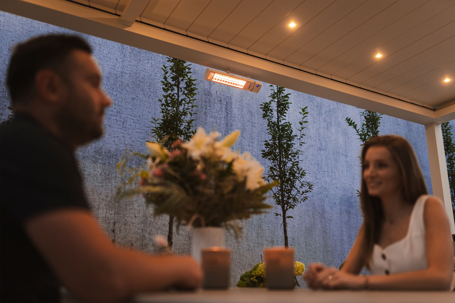 Dzięki promiennikom można komfortowo korzystać z tarasu także w chłodniejsze dni. W połączeniu z zabudową boczną pozwalają one cieszyć się przestrzenią tarasową niemal przez cały rok.