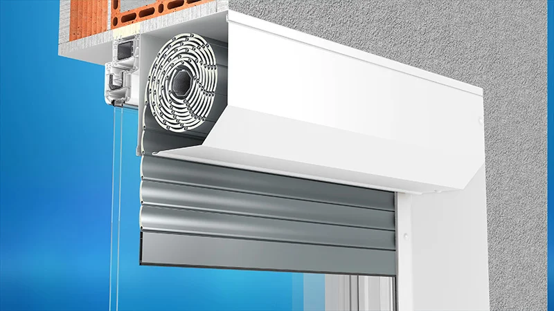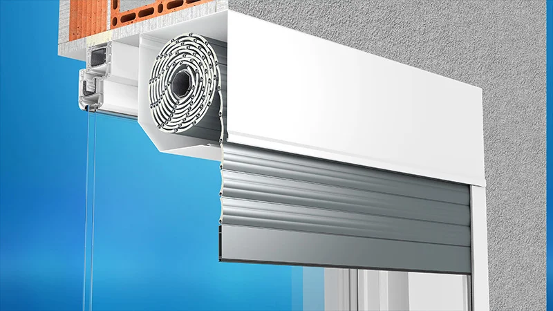 Cała roleta montowana jest na elewacji budynku. Napęd (taśma lub linka) wyprowadzone są tyłem skrzynki, następnie poprzez otwór w ścianie do wnętrza pomieszczenia. Montaż ten wykonujemy po zamontowaniu okna.