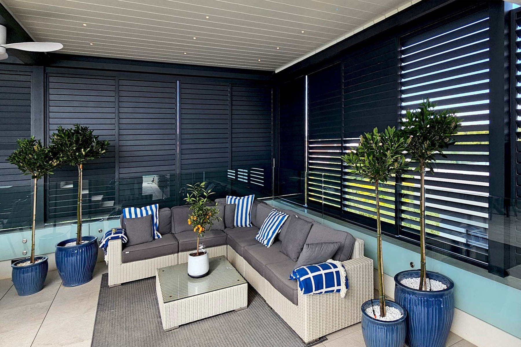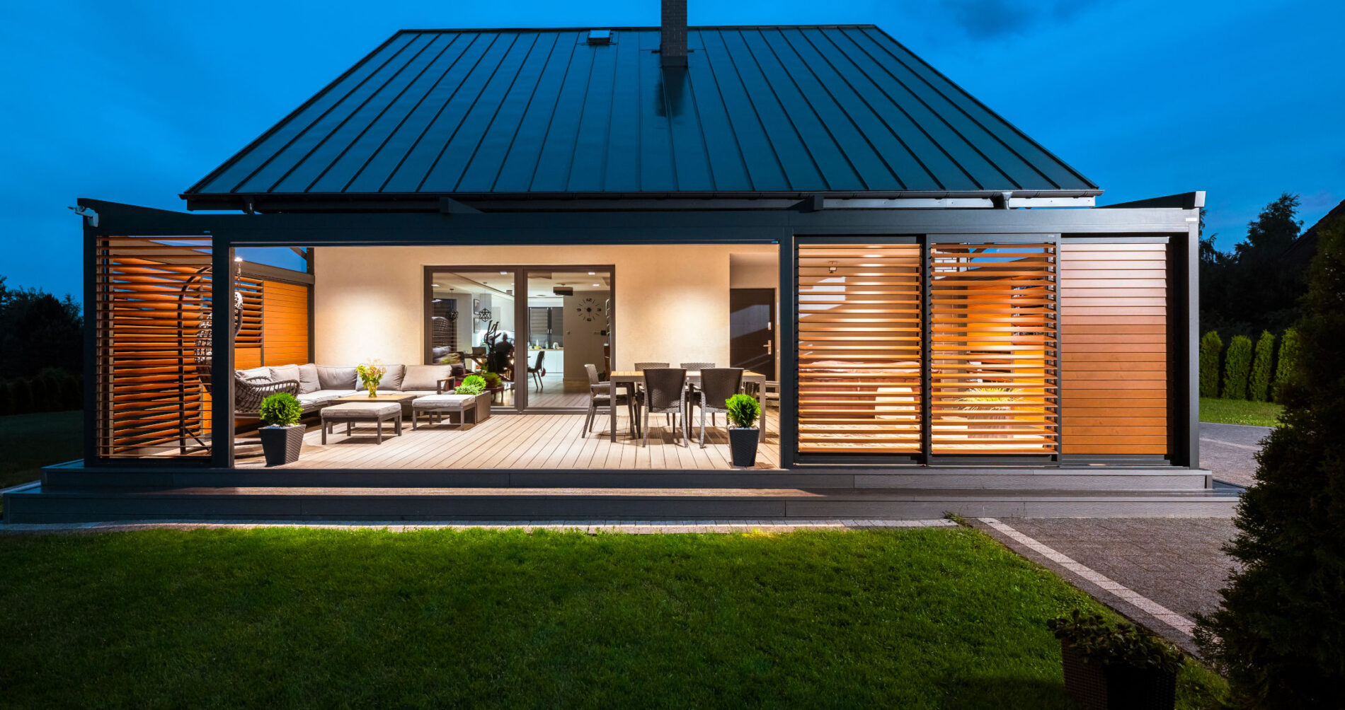 Shuttersy to nowoczesne aluminiowe okiennice przesuwne, które doskonale sprawdzają się jako osłona tarasów, balkonów oraz loggii. Stanowią skuteczną ochronę przed słońcem i wiatrem, a jednocześnie zapewniają większą prywatność w przestrzeni wypoczynkowej.