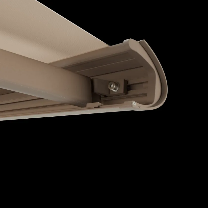Wielki komfort na niewielkich balkonach. Dzięki dużemu zakresowi kąta pochylenia markiza skutecznie chroni nie tylko przed słońcem, ale również przed jego nisko padającymi promieniami oraz spojrzeniami z zewnątrz. Owalna kaseta w pełni osłania konstrukcję i tkaninę, łącząc elegancki design z nowoczesną technologią.
