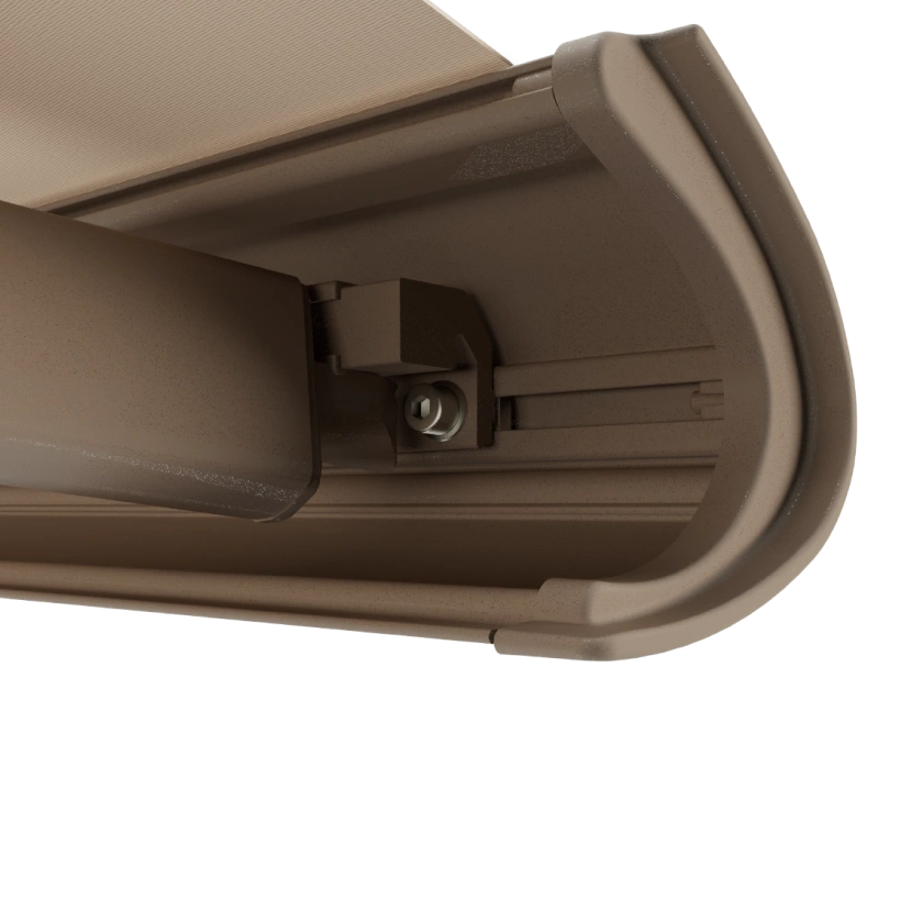 Więcej komfortu na Twoim tarasie. Dzięki regulowanemu kątowi nachylenia markiza skutecznie zapewnia cień, chroni przed oślepiającym słońcem oraz zwiększa prywatność. Jej kompaktowa, zaledwie 13-centymetrowa kaseta w pełni osłania tkaninę, harmonijnie wtapiając się w architekturę budynku i chroniąc materiał przed czynnikami zewnętrznymi.